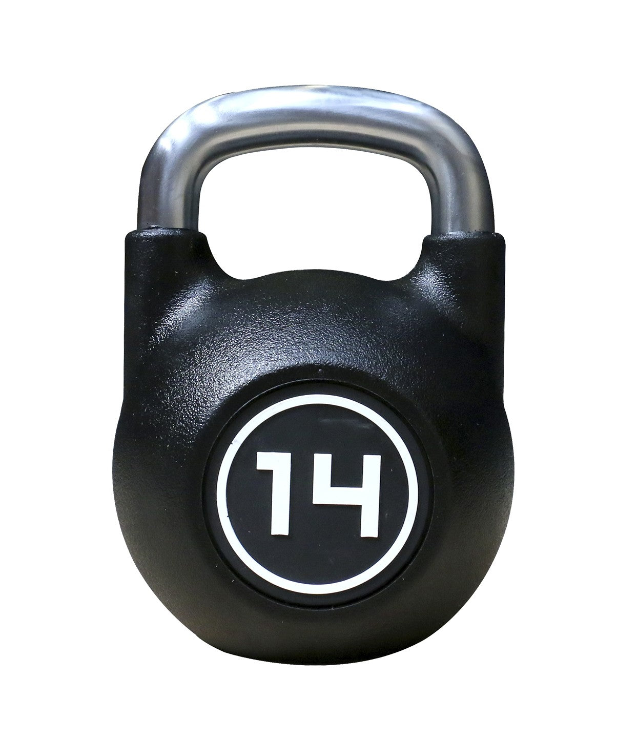 Competition kettlebells are made from steel and feature a smooth handle that is comfortable to hold. They are always the same size regardless of the weight. This includes the handle diameter, so your hand insertion will never change.