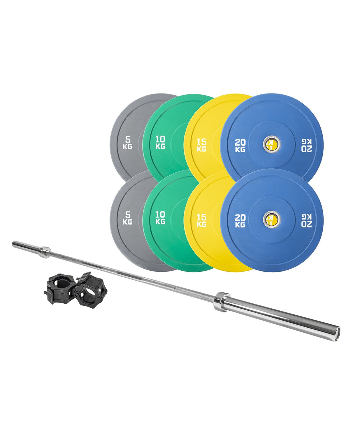 100kg Coloured Bumper Plate Package Comes with Everything you Need to Start Your Weightlifting Journey
