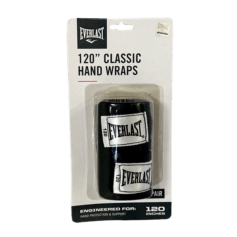 The Everlast 120” Elite Black Hand Wraps are 2 x 120 inches of machine washable polyester/elastane blend material, which provides breathable comfort and protection while training. The new softer, thinner material was engineered for more comfortable and compact wrapped hands.
