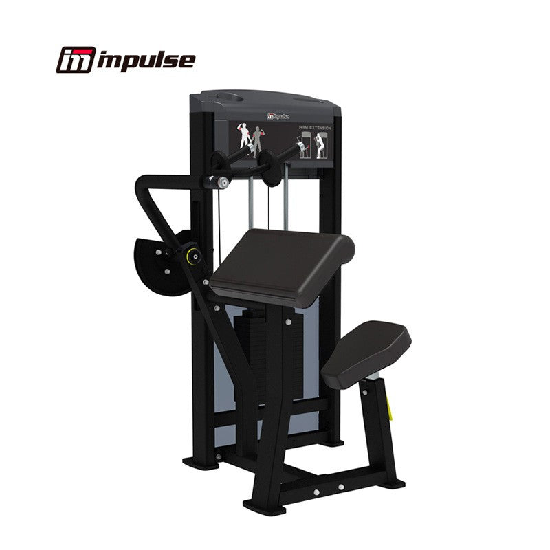 Impulse IF9323 Arm Extension experience targets triceps training with the innovative. This machine allows users to select their desired weight, gripping the handlebars, and rotating around the elbows while pressing the machine's arms to effectively engage the triceps. The 45-degree tilted arm pad ensures optimal stability during workouts. The adjustable seat accommodates users of varying heights and arm lengths. Vertical handlebars and an anti-slip shield enhance usability, promoting superior training performance.
