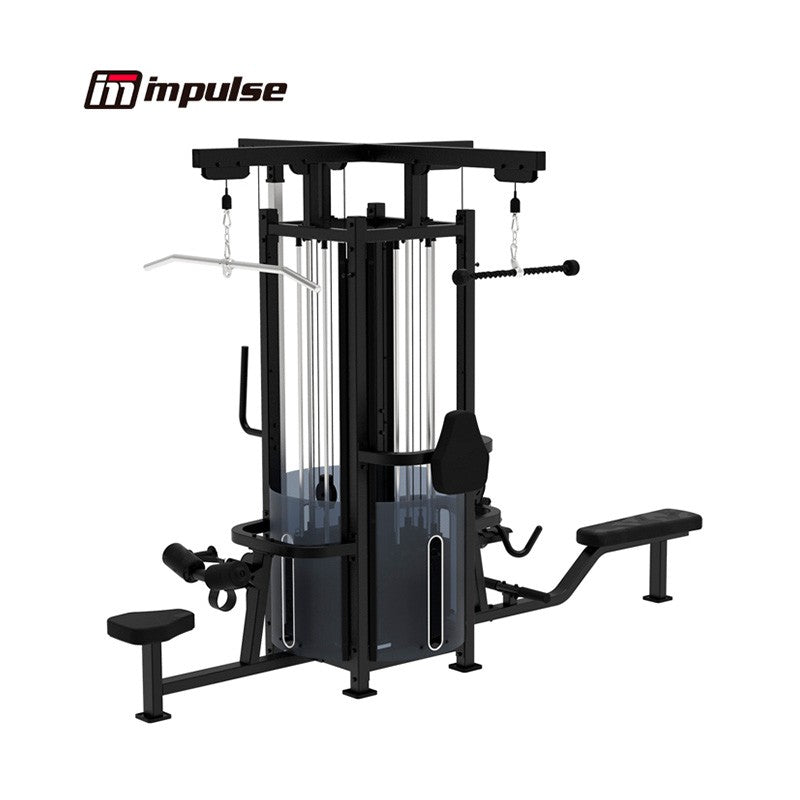 The Impulse Fitness IF9327 4 Stack Multi-Station, a versatile training unit meticulously designed to target upper and lower limbs comprehensively. This innovative equipment not only enhances balance, core strength, coordination, and stability but also offers a wide range of exercise options for users. Its compatibility with the IF9327OPT and other equipment such as the IF9325 Adjustable HI/LOW Pulley allows for the creation of a Jungle system, enabling even more diverse training routines. Perfect for large fitness clubs seeking variety and versatility, this equipment offers an unparalleled training experience. The IF9327 4 Stack Multi-Station is part of Impulse Fitness's sectorised series, tailored for entry-level small clubs and institutional applications. With its simple, clean lines and ease of maintenance, it seamlessly integrates with the benches and racks of the IF line, providing a complete functional package for any fitness facility.