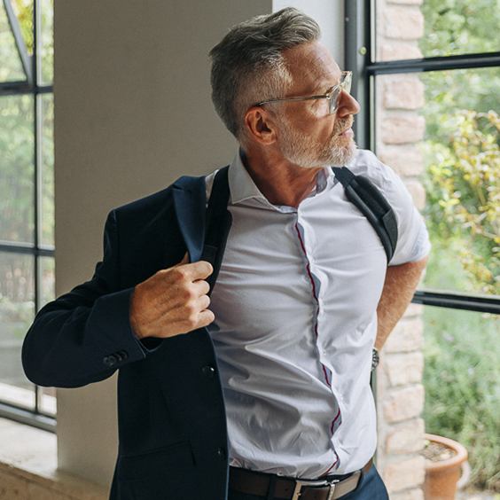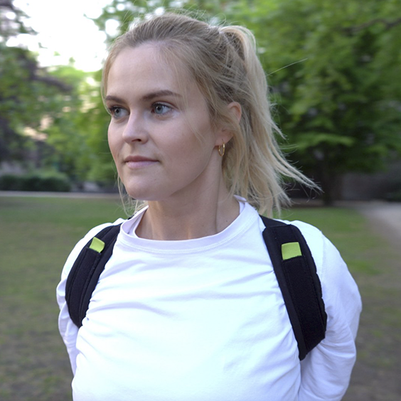 Wear the Posture 2.0 back brace over a T-Shirt or any other base layer. First adjust the regulatory system on the back to desired size/intensity and close the velcro leash. Put the posture brace on like a jacket by slipping the arms through the openings. Adjust the size with the velcro straps. Tighten the Posture 2.0 so that two fingers can fit between your shoulder and the strap. You purposely won ́t find a size scale on the posture brace. Adjust the back brace in a way you feel comfortable wearing it. In any case, it should not feel uncomfortable. When you are standing upright, you should barely feel the back brace. When your shoulders are slouching forward, you should feel a slight pull. This is a reminder to stand tall and pull your shoulders backward.