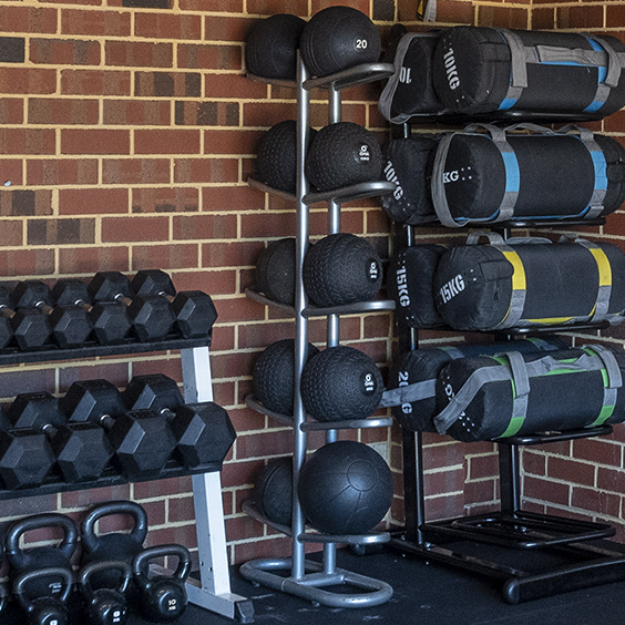 Shelves allow you to store 2 power bags per shelf. For up to 10 bags. Save space and keep your training area clear and safe.