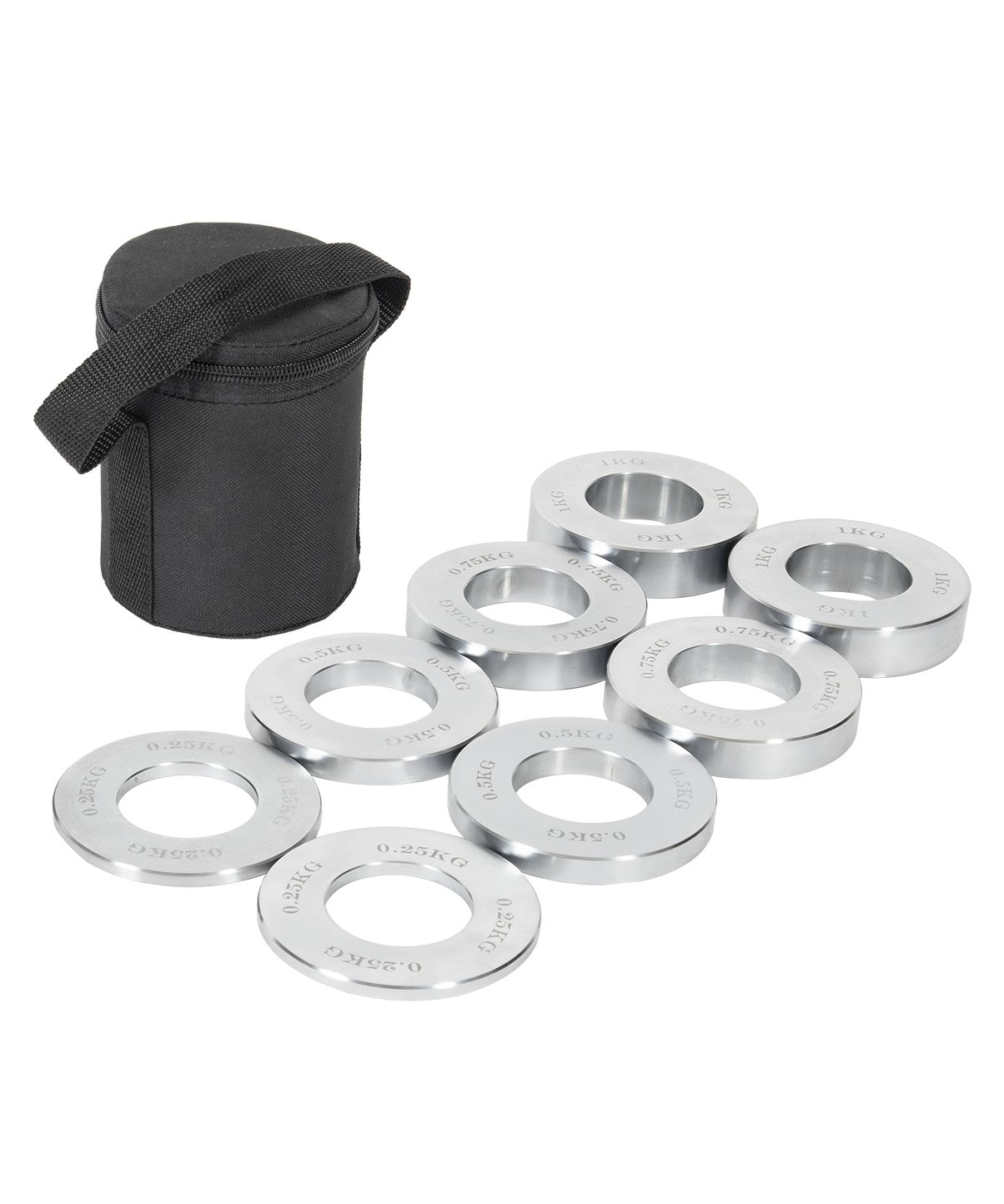 Individual weights are clearly engraved on plates and are designed to fit tight allowing for a secure and comfortable lift when collars aren't used. A set of 8 plates in a convenient carry bag consisting of: