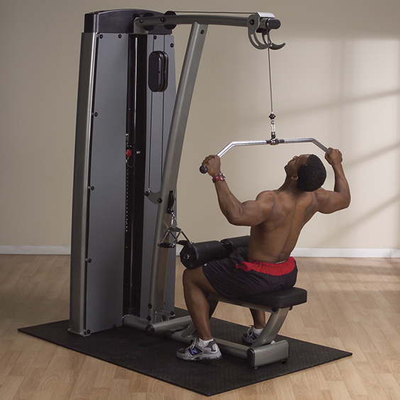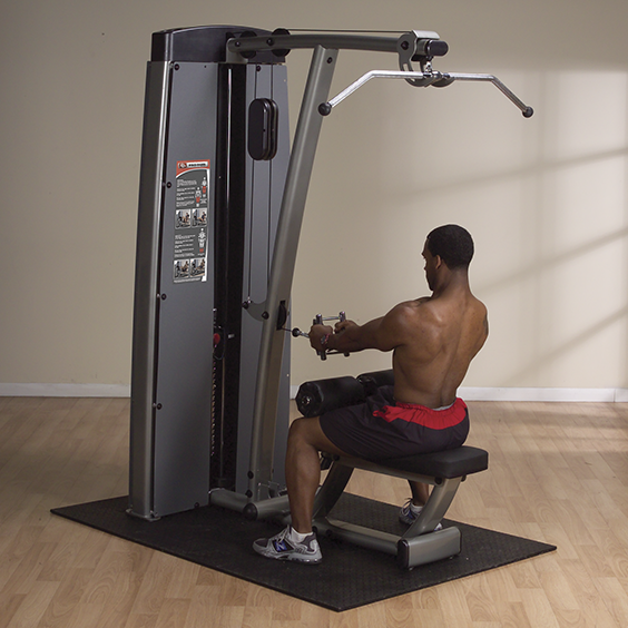 A lat machine is an essential piece of equipment for workouts including pull downs, dumbbell rows, bent over rows, chins, “T” bar rows, and seated cable rows.