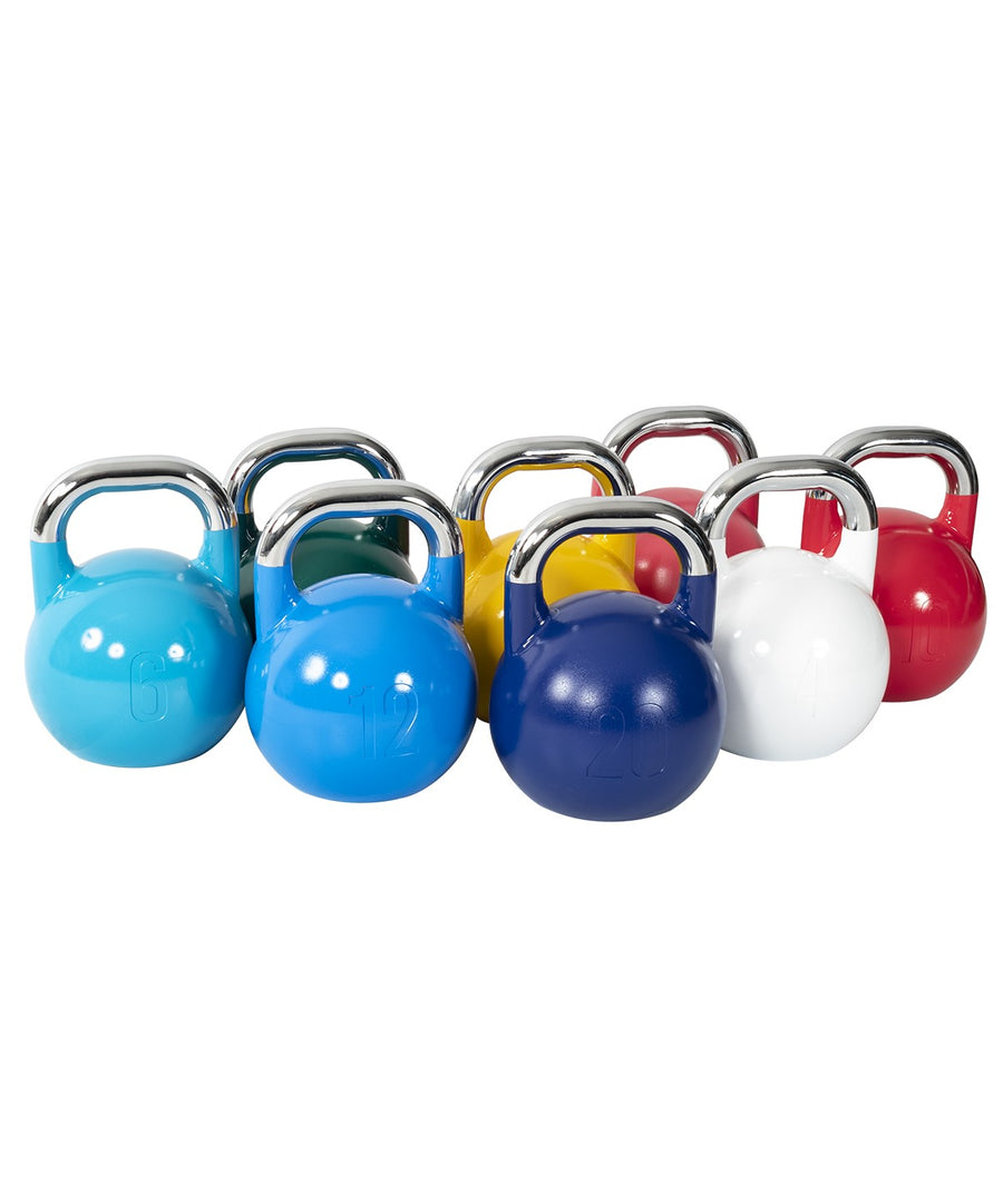Every increment of the competition kettlebell retains the same base diameter & handle width allowing for easy transitions as you move up in weight. Each bell includes a smooth blemish free surface and handle coded clearly in a variety of appealing colours, reducing friction and discomfort during cleans, snatches and overhead presses.