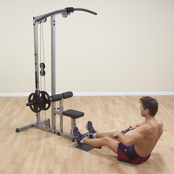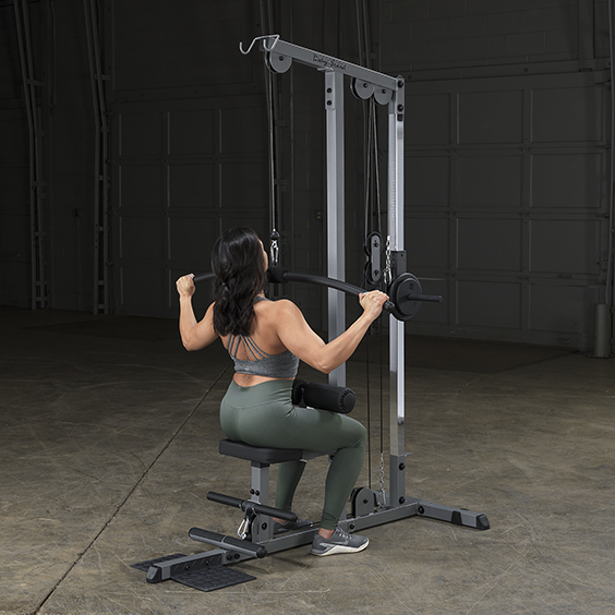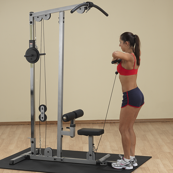 Combine overhead lat pulls and a rowing action with the BodySolid Freeweight Pro Lat Machine