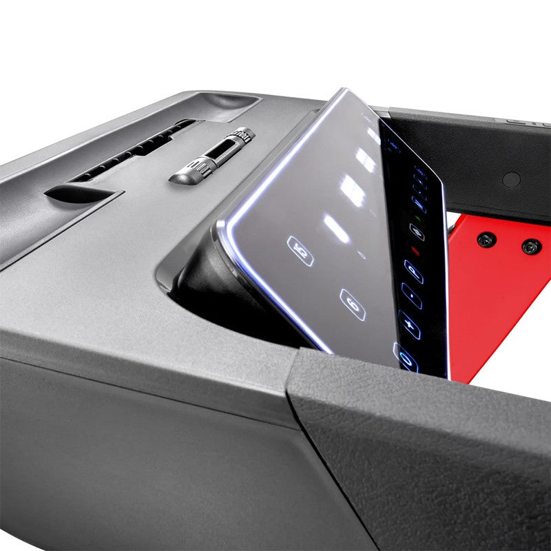 - LED console with real-time performance metrics