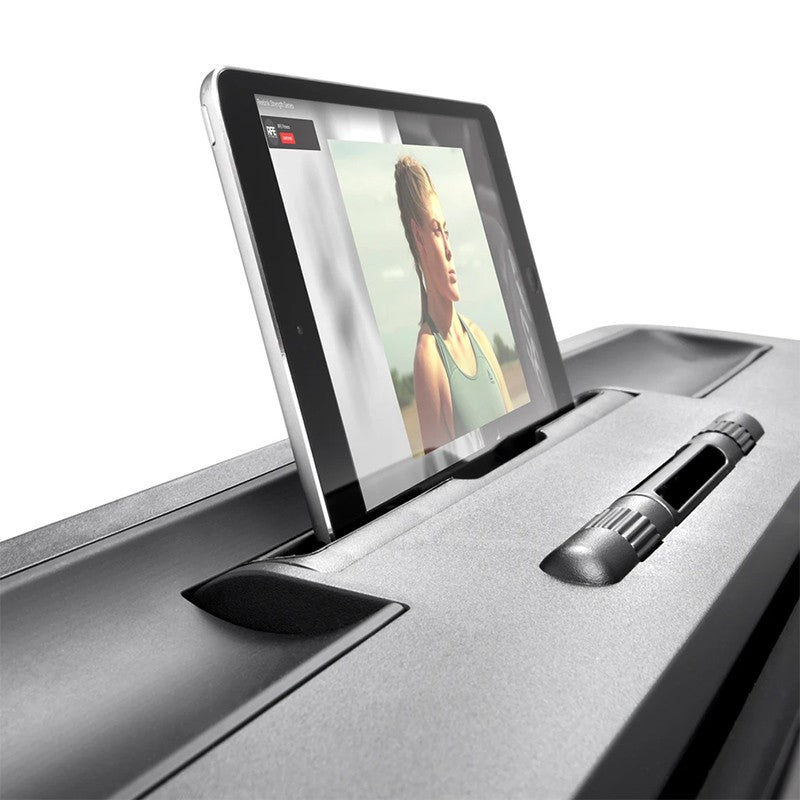 The slimline LED console displays real-time metrics (speed, time, calories, heart rate, etc.) while integrated Bluetooth speakers and a media dock keep you motivated. With 15 levels of incline and 24 pre-set workouts, it offers a variety of training options.