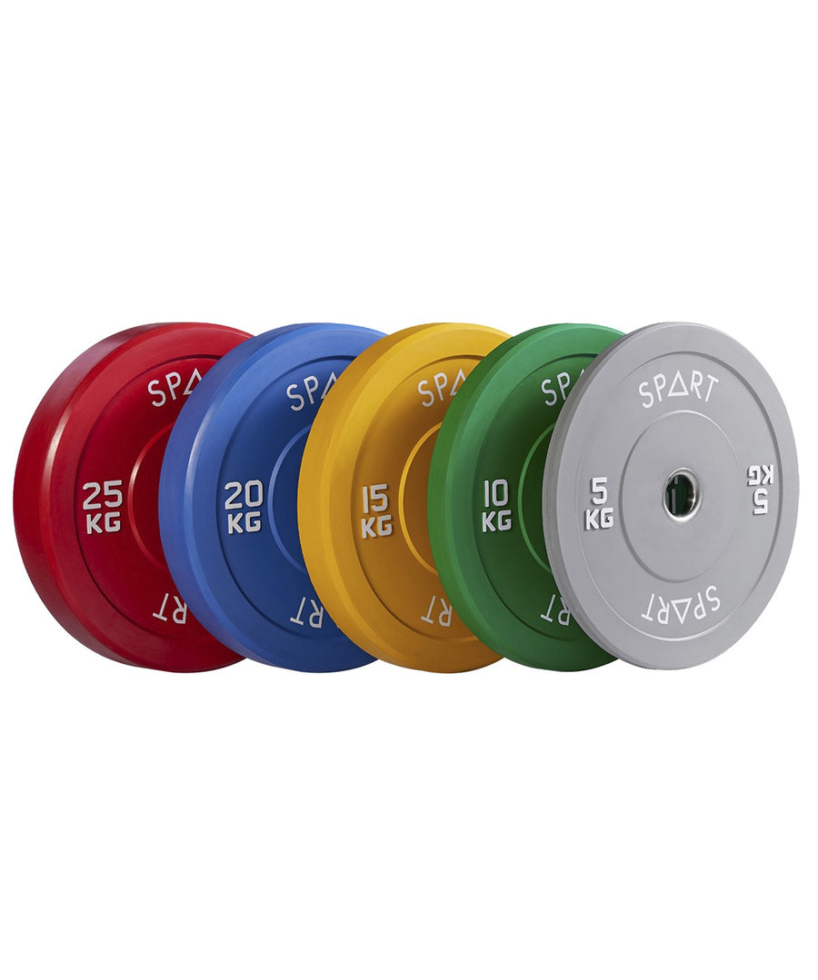 The SPART Rubber Bumper Plates are durable, rugged and engineered to meet the most demanding bumper plate standards. Drop tested from 2 meters x 5000 repititions and colour coded for easy identification.