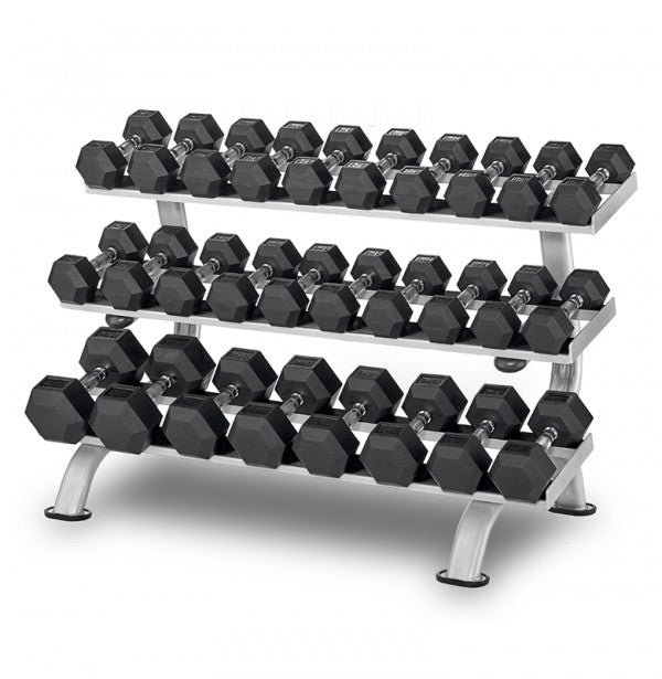 The SPART Rubber Hex Dumbell Rack is the Ideal Rack for Storing Hex Dumbells and Keeping the Gym Floor Space Tidy and Safe with no Trip Hazards