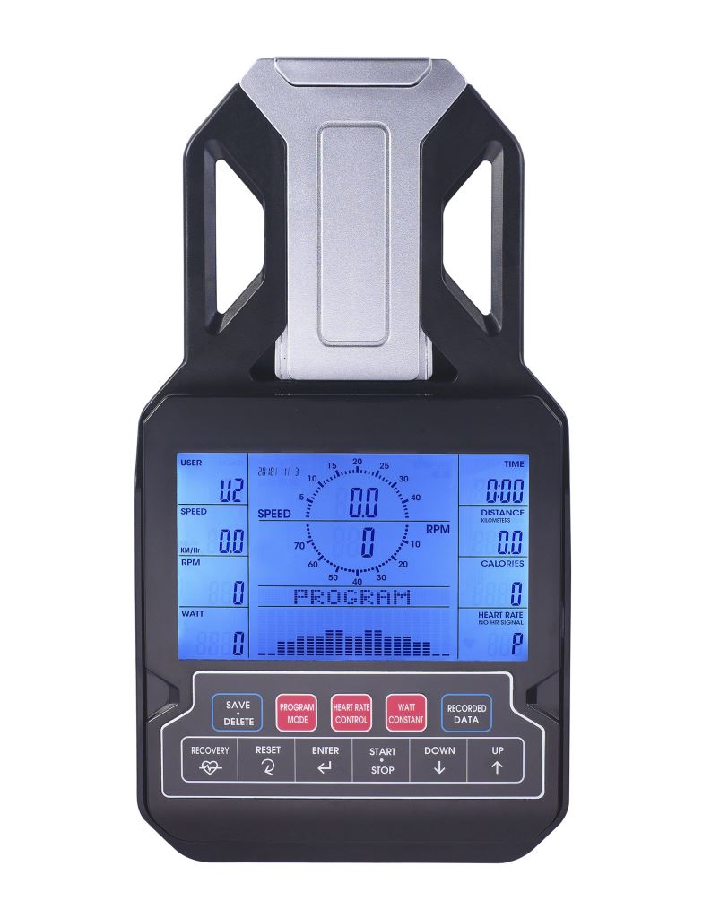 - Time, Distance, Speed, RPM, Calories, Heart Rate, Watts