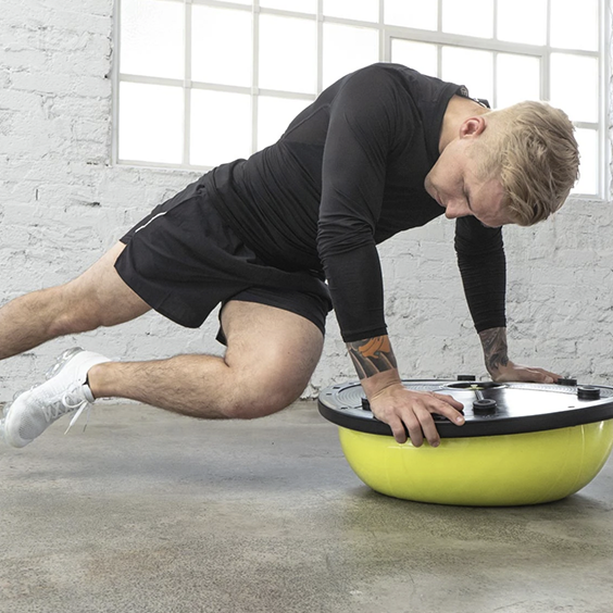 Add an element of instability which will improve your core strength, proprioception (balance & coordination) and posture. The unstable surface forces your body to adapt and stabilise through the key ankle, Knee & hip joints. This in turn activates the deep abdominal, hip, glute, lower & upper back muscles.